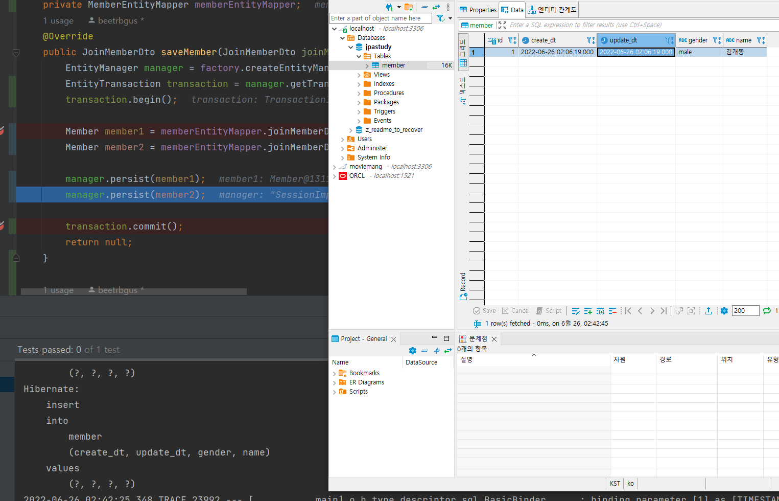manager.persist()를 두번 호출했고 insert 쿼리가 두번 만들어졌다 ( 위에 짤림..)