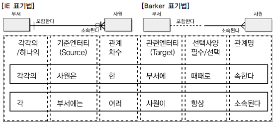 - 기준 엔터티를 '한 개 | 하나의' 또는 '각'으로 읽는다.