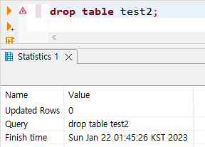 테이블 자체를 지우고 싶을 때 Drop Table을 사용한다.
