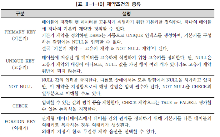 제약조건은 데이터의 무결성을 유지하기 위한 방법이다.
