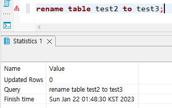간단하게 테이블 이름을 변경하는 질의문이다!