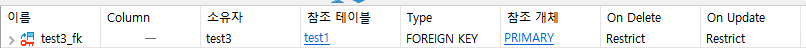 test 테이블에 test3_fk라는 제약조건을 추가했다.