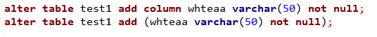 - Alter Table '테이블명' Add ('컬럼명' '자료형' ) 또는