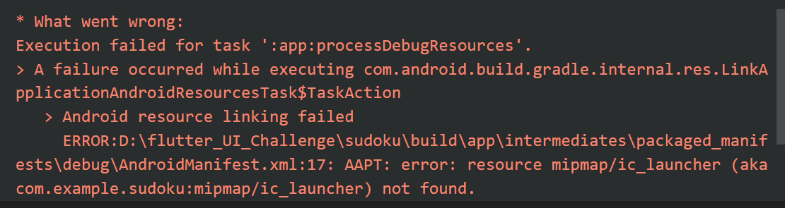 끝을 보면 'mipmap/ic_launcher를 찾을 수 없다'라고 하는데 기본 아이콘 이름은 ic_launcher인데 위의 캡처 이미지를 보면 알 수 있듯이 나는 appicon.co에서 파일을 변경할 때 test라는 이름으로 받았다.