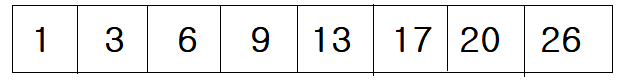 다음과 같이 오름차순으로 정렬된 배열이 있다고 생각해보자.