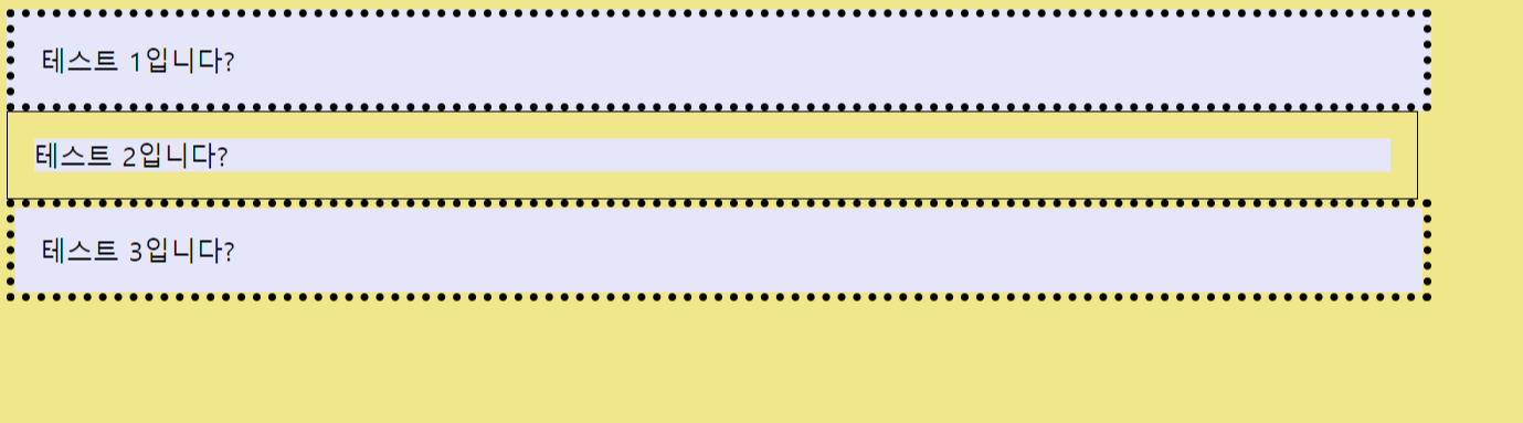 박스 모델 관점에서 배경 적용 범위를 조절할 수 있음. 테스트 해보면 테스트 1입니다? 테스트 2입니다? 테스트 3입니다? .bg1{ background-clip: border-box; background-color: lavender; width: 90%; padding: 15px; border : 5px dotted black; } .bg2{ background-clip: content-box; background-color: lavender; width: 90%; padding: 15px; border : 5px dotted black; } .bg3{ background-clip: padding-box; background-color: lavender; width: 90%; padding: 15px;..